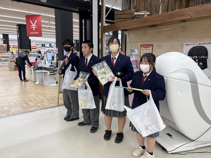 5月29日(木)、「自転車安全利用・ヘルメット着用促進街頭キャンペーン」に前期生徒会役員7名が参加しました。ひたちなか警察署 交通課、ひたちなか市 生活安全課の皆さまと共に、佐和駅にて自転車利用をしている方々にキャンペーン啓発品の配布、交通安全の呼びかけを行いました。
