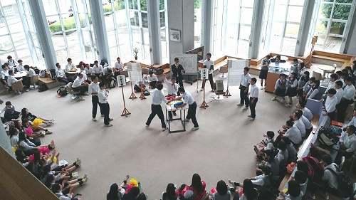11月は文化部発表会が行われます。約2週間,多目的ホールに,文化部の作品や研究展示が行われます。この日は,掲示用の展示パネルが運ばれていました。