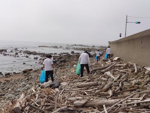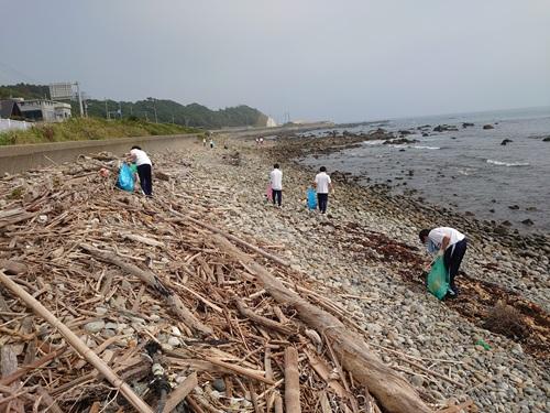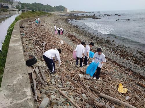 令和7年5月13日(火)に、ひたちなか市の海岸に流れ着いた漂着ごみを拾い、ひたちなか市の海岸をきれいにし、地域社会に貢献するという目的で「阿字ヶ浦海水浴場」、「磯崎海岸」、「平磯海岸」、「平磯海水浴場」等の5カ所の海岸で清掃ボランティアを行いました。