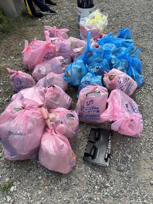 希望者129名で海岸清掃を行い、燃えるゴミ、燃えないゴミ併せて約120袋のゴミを集ました。