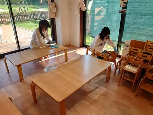 夏休みの令和4年7月26日(火)から8月4日(木)までと令和4年8月23日(火)から8月25日(木)までの9日間、「おーくす佐野保育園」の窓拭きと除草作業のボランティア活動をしました。
