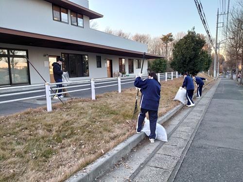 寒さも厳しくなってきた始業前の様子です。野球部とバレーボール部の人たちが、清掃活動や挨拶運動をしていました。