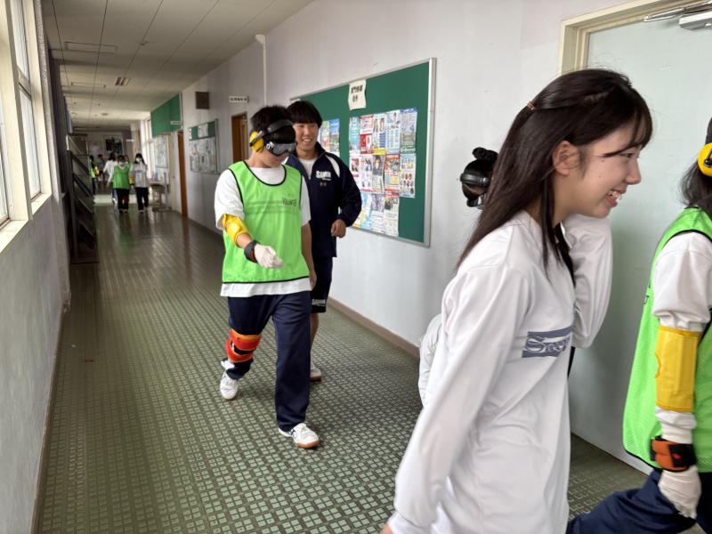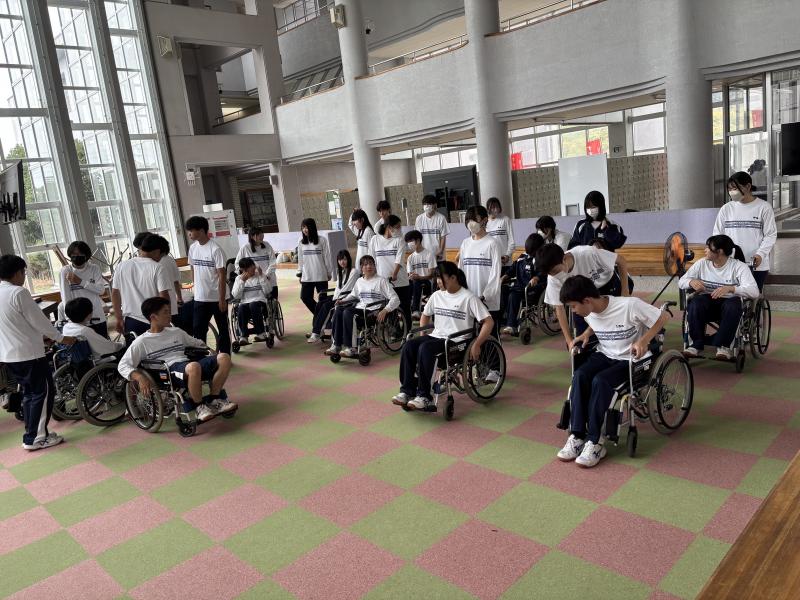 ひたちなか市社会福祉協議会の担当者の方々や、23名の講師・ボランティアの方々のご協力のもと、「高齢者疑似体験」や「車椅子体験」、「点字体験」、「手話体験」、「要約筆記体験」をおこない、体の不自由な方に対する理解を深め、奉仕や福祉について多くのことを学ぶことができました。