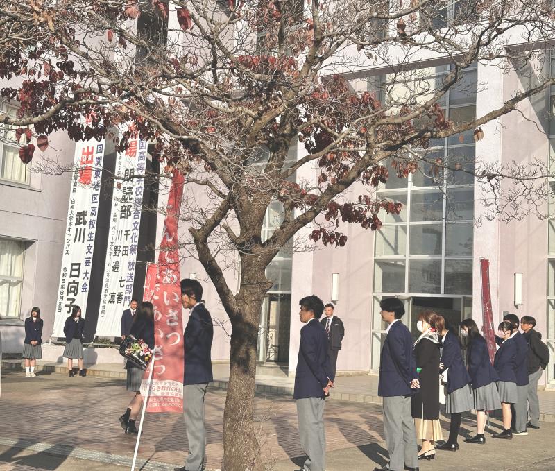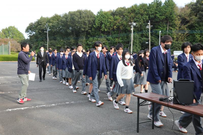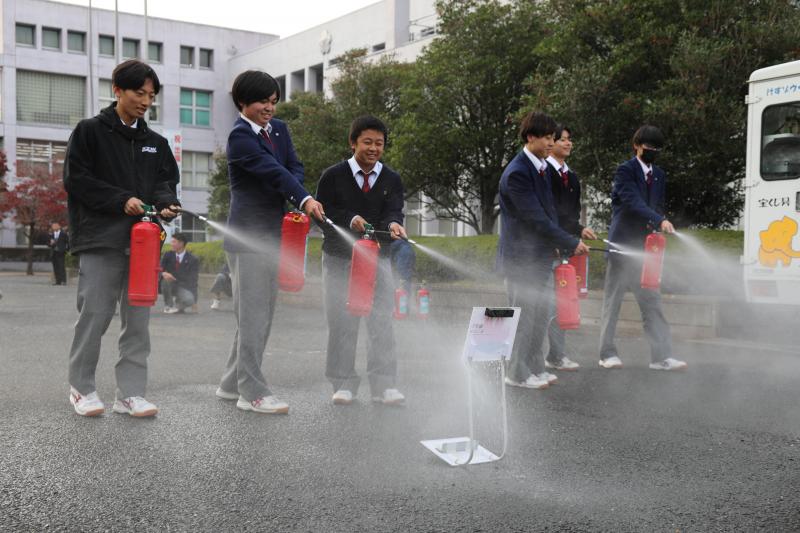 令和7年10月29日(水)に、全校生徒・全職員による防災訓練を実施しました。訓練内容は、「地震と火災」による通報訓練、避難訓練、消火訓練、「地震による原子力発電所での事故発生」による屋内退避訓練を行いました。消防署から消防士の方1名に来校していただき、訓練の様子を見ていただきました。本日の防災訓練を通して、地震や火災がいつ起きても、慌てずに落ち着いて行動し、仲間の命、自分の命を大切にできるよう日々の生活の中に活かしていきたいと思います。